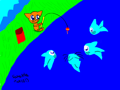 Yesterday, I was watching for the first time a TV show called "Catfish". The first thing that popped in my mind when I heard of the show's title was a cat fishing. Then I thought of catfish. Then I thought of putting the two together, and this is what I came up with.